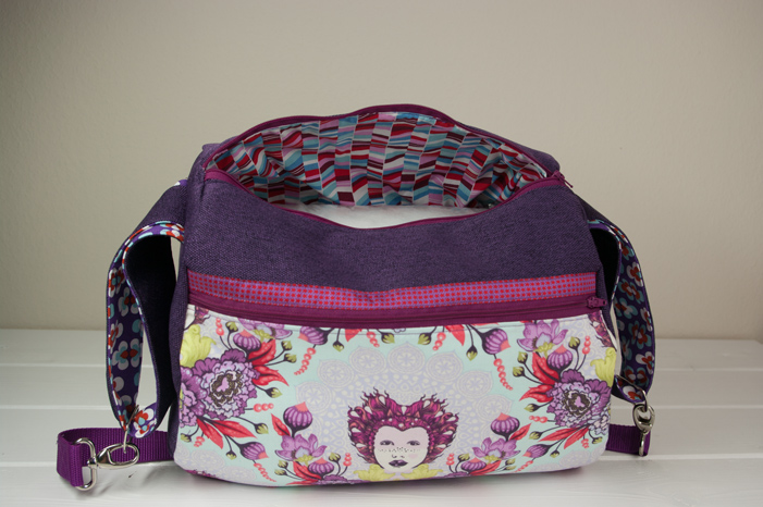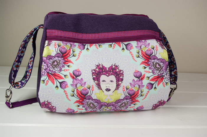 Für das Innenfutter habe ich ein Schätzchen von Hamburger Liebe verwendet, was farblich gut zum lila des Außenstoffs passt. Damit die Tasche mehr Stand hat, habe ich den Innenstoff noch mit H630 Vlies verstärkt. Ein Innenfach habe ich dieses Mal weggelassen.
